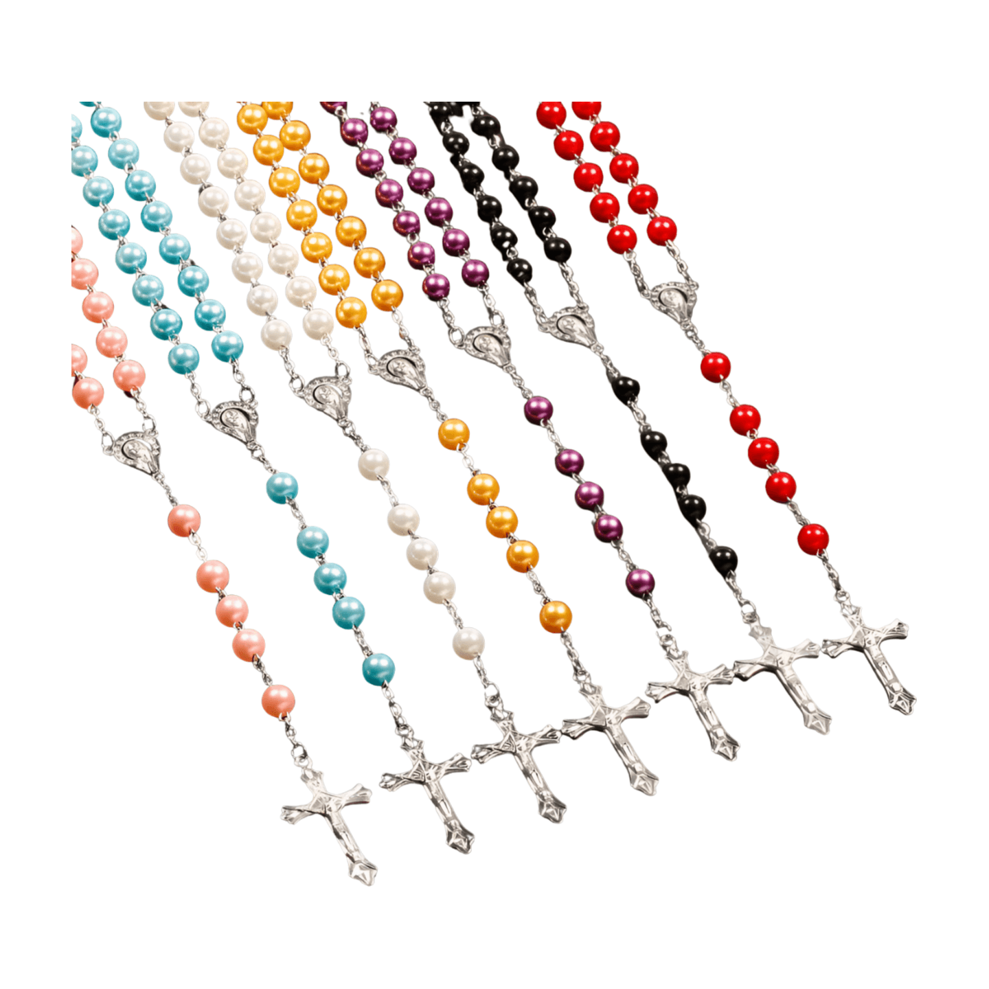 The FWF Faux Pearl Rosary is a beautiful and elegant religious accessory, perfect for those who cherish their faith. Made with high-quality faux pearls, it brings a timeless sense of grace and beauty to your daily devotions. The beads are delicately crafted to mimic the luster of real pearls, while the durable tin and zinc alloy construction ensures longevity.