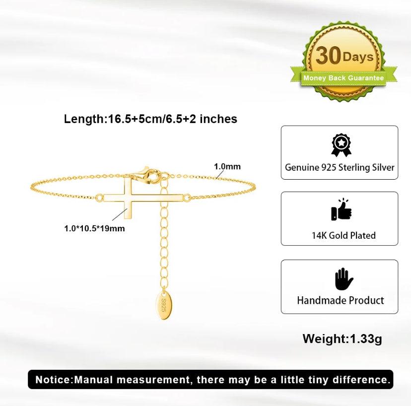 This elegant bracelet features a delicate gold-plated cross charm that adds a touch of faith-inspired fashion to your everyday look. Crafted from high-quality 925 sterling silver, this bracelet is designed to be both timeless and meaningful, making it the perfect accessory for any believer. Whether worn as a subtle reminder of your faith or a bold statement piece, this bracelet will inspire and uplift your spirit.