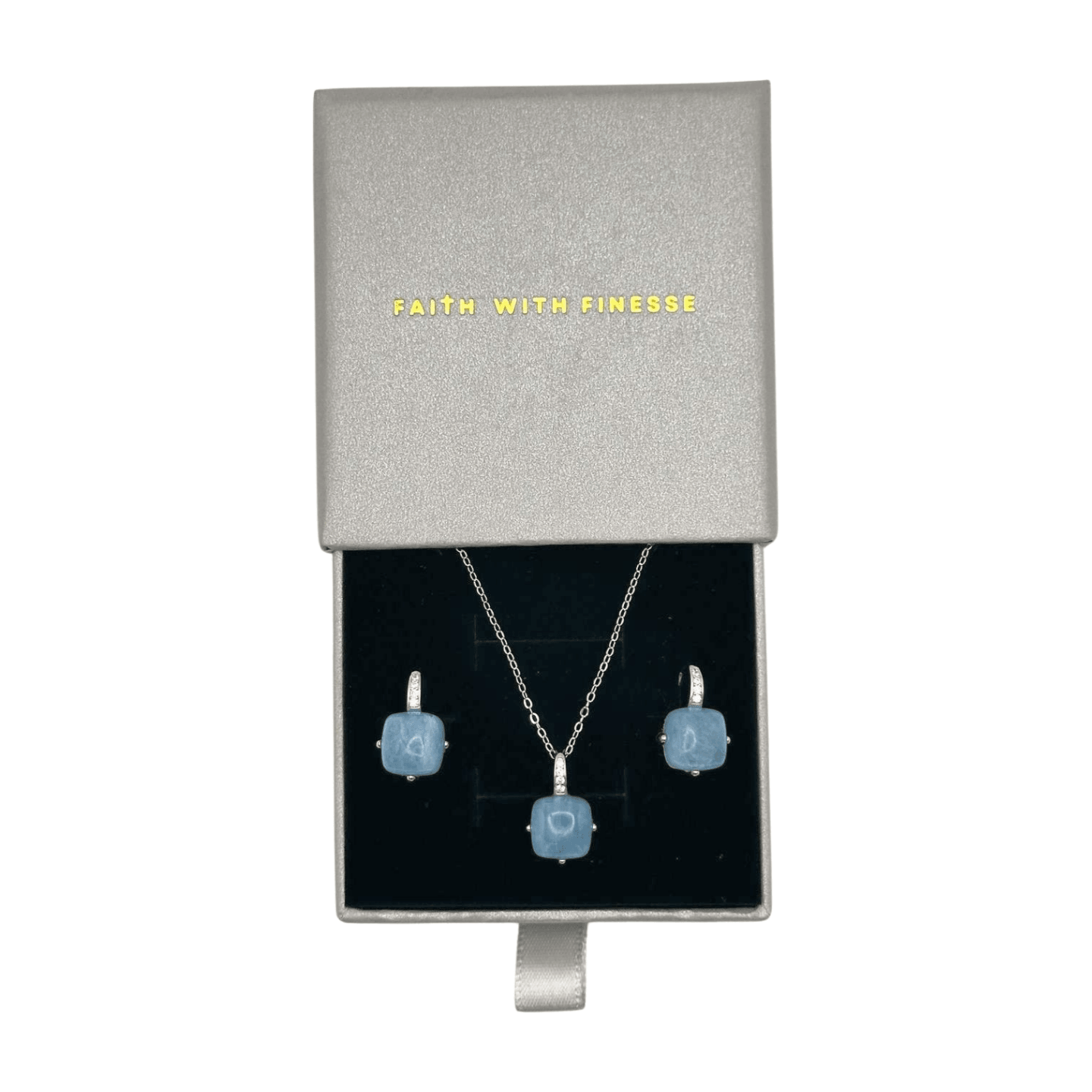 - Stone: AAAA CZ + Genuine Natural Aquamarine