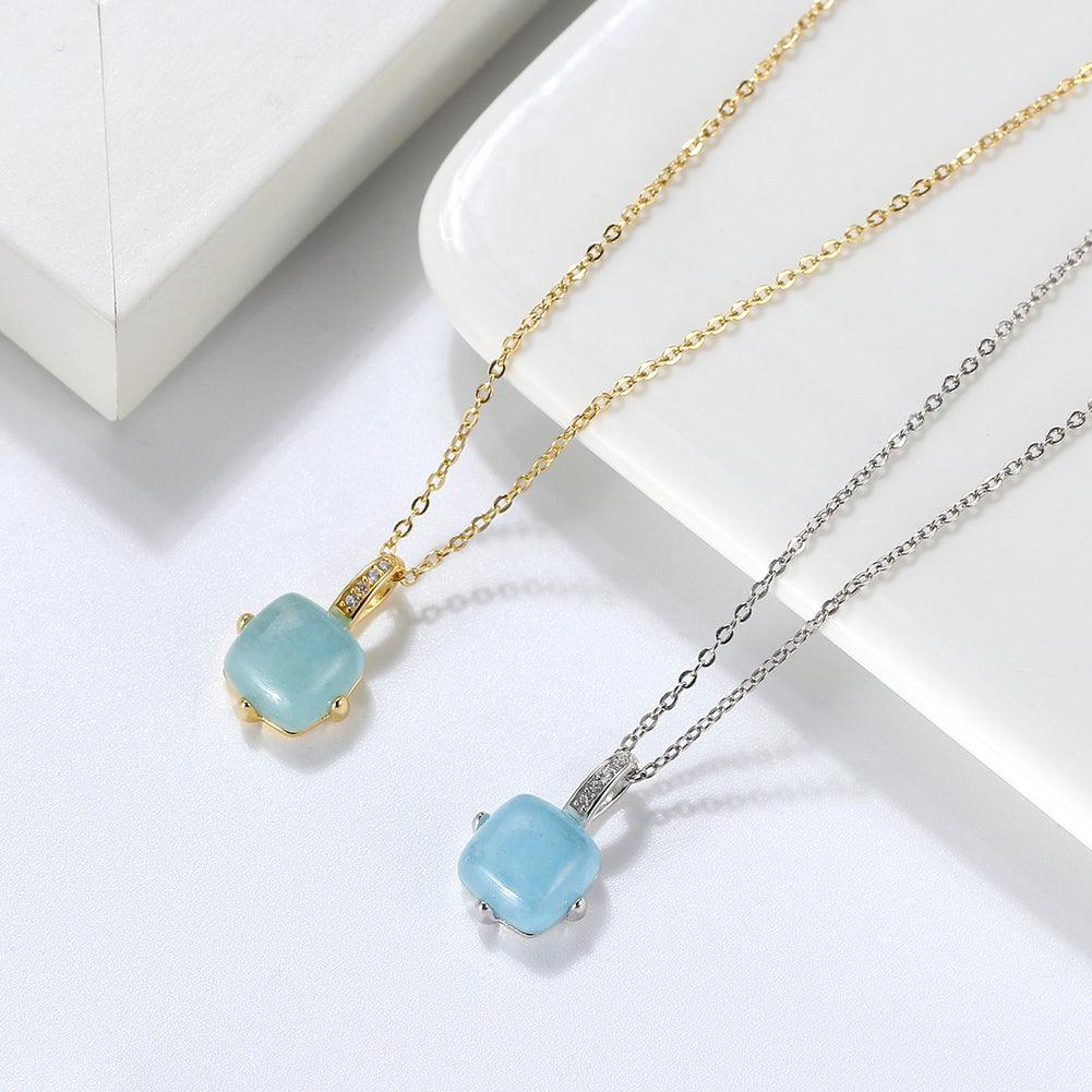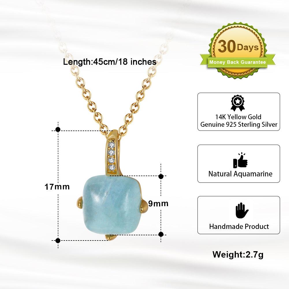 FWF Sterling Silver/14K Gold Plated Minimalist Natural Aquamarine Gemstone Pendant Necklace