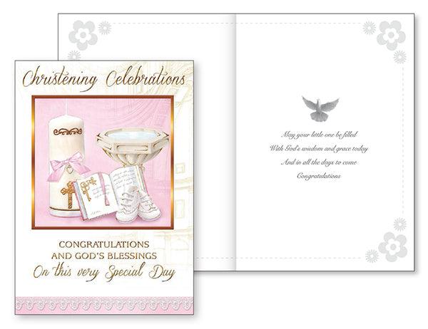This card is an ideal way to mark the christening of a precious baby girl, offering heartfelt congratulations and blessings for her future.
