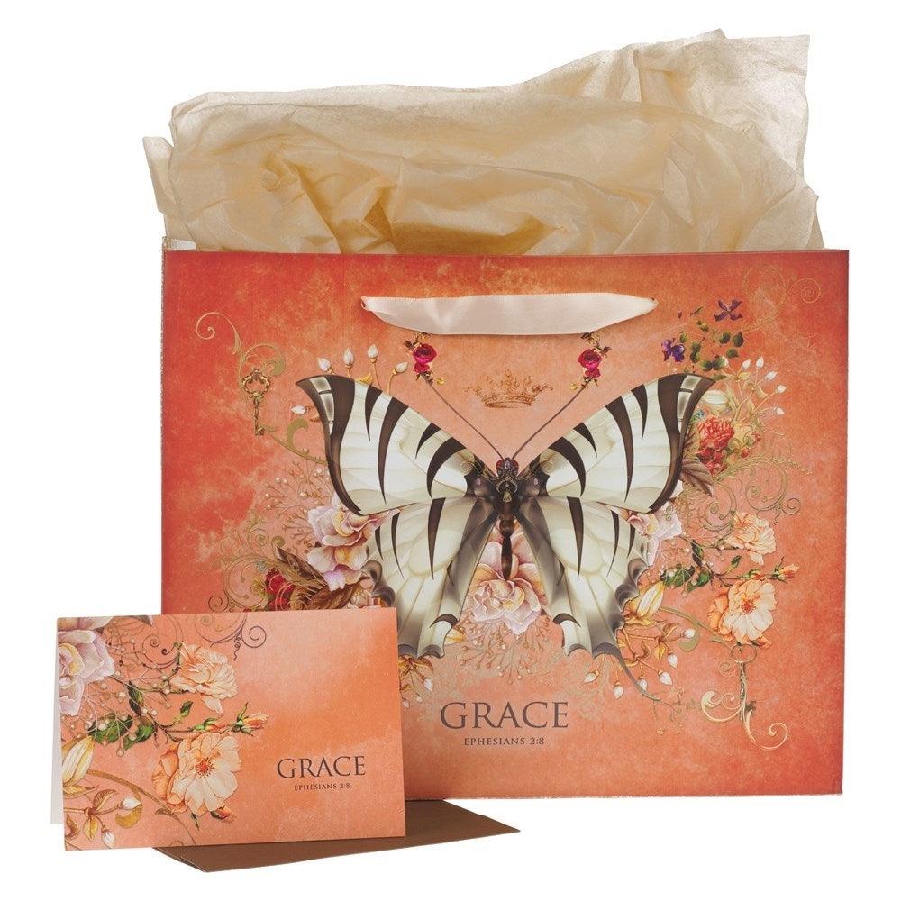Grace - Ephesians 2:8 Red Large Landscape Gift Bag w/Card & Tissue Paper Set