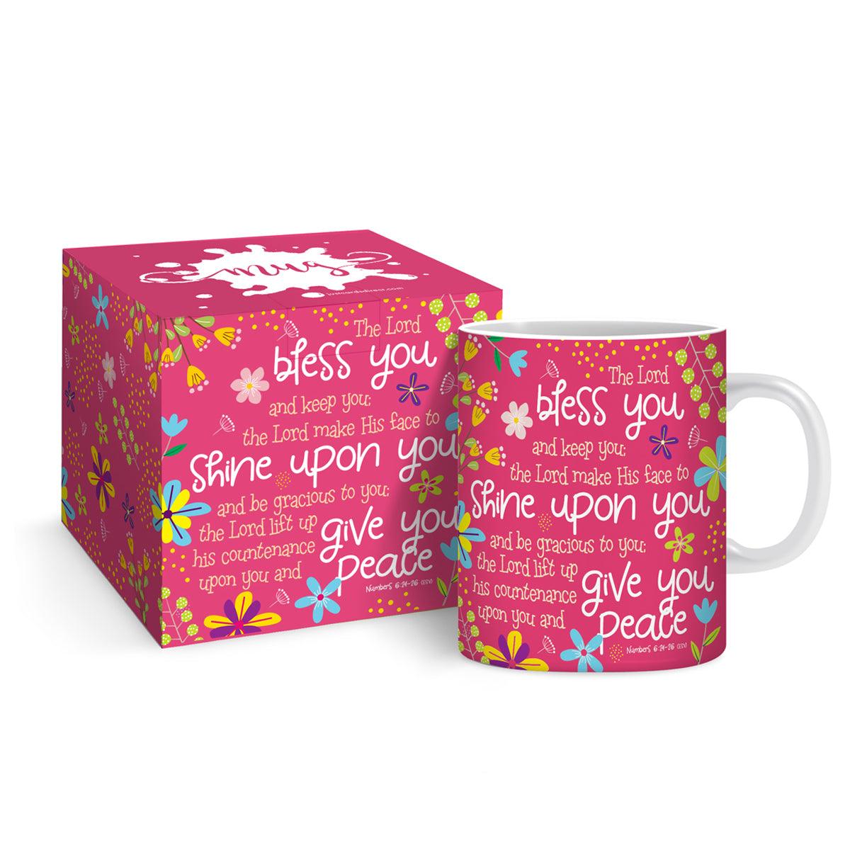 Wording on mug: 'The LORD bless you and keep you; the LORD make his face to shine upon you and be gracious to you; the LORD lift up his countenance upon you and give you peace'. Numbers 6: 24-26 (ESV)